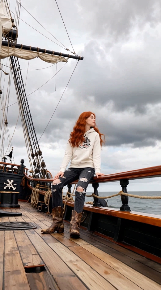 Sailing and surfing hoodie with print of a pirate ship. Normal fit for mid-season.
